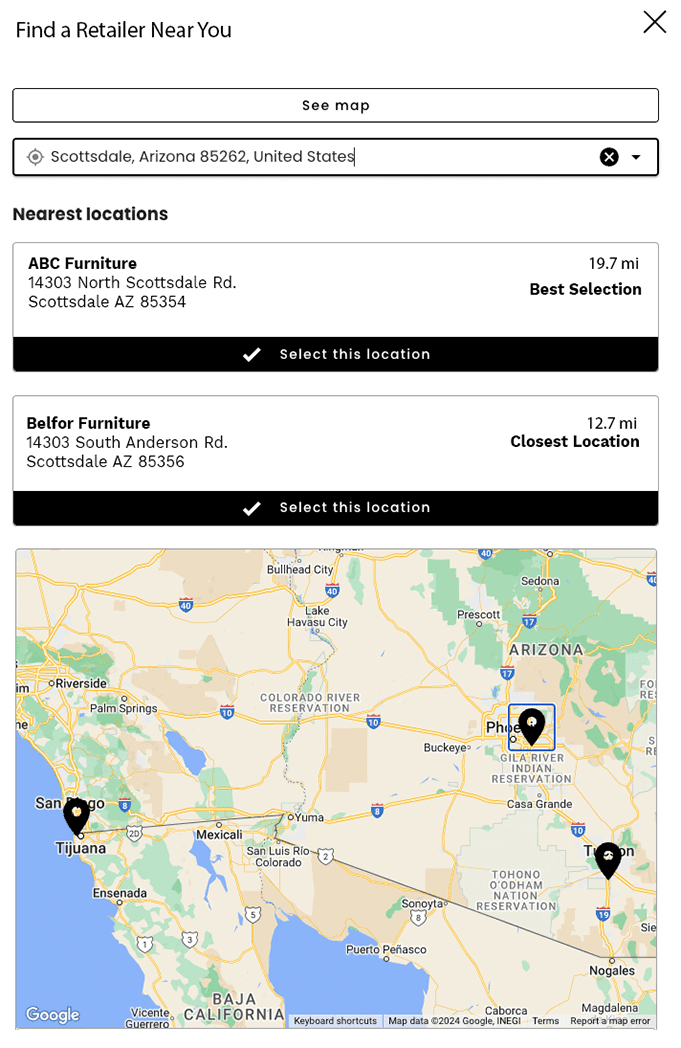 One key feature of our Store Locator is its ability to prioritize search results. By taking into account various factors such as the number of SKUs (stock-keeping units) available in the retail store, the sales volume of the retailer with the manufacturer, and the distance to the store, you can ensure that your top retailers receive the leads first.